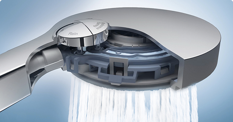 The Inner Water Guide acts as a permanent thermal barrier, protecting the outer surface from high temperatures. This ensures the handle is always comfortable to hold and safe against scalding, even during long, steaming showers. You can enjoy your perfect temperature with total peace of mind, knowing the hand shower remains cool to the touch.