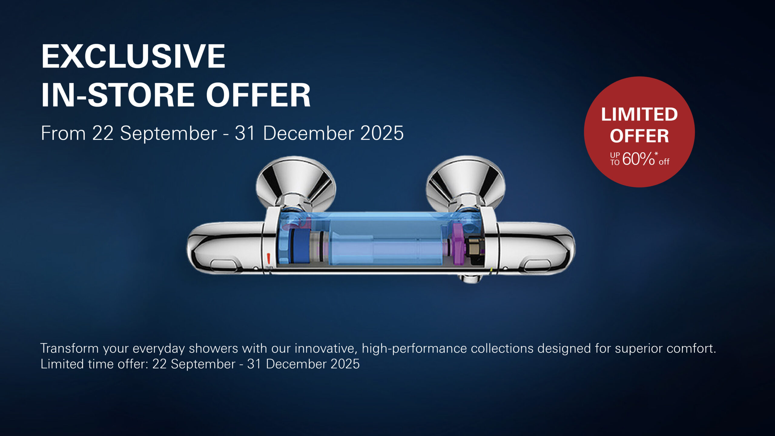 GET LIMITED GROHE OFFERS TODAY! Experience superior comfort with our innovative, high-performance shower collections. Enjoy a special offer up to 60% off from September 22nd to December 31st, 2025 at your nearest GROHE store.